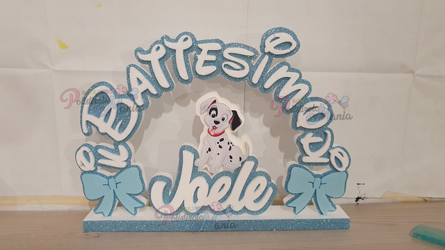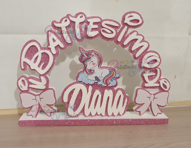 misura 47x34 cm, con spessore di 2 cm. Lo sfondo è glitterato solo frontalmente, la scritta è bianca glitterata. Include 1 nome e 1 personaggio. Il glitter della base, se non specificato diversamente nelle note finali, sarà uguale a quello dello sfondo, con possibilità di base tutta colorata.