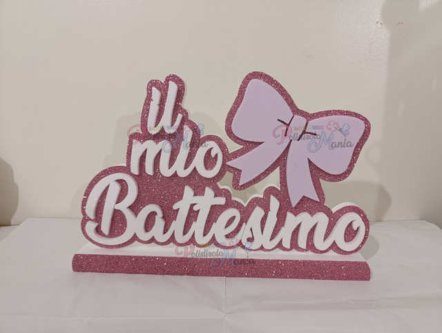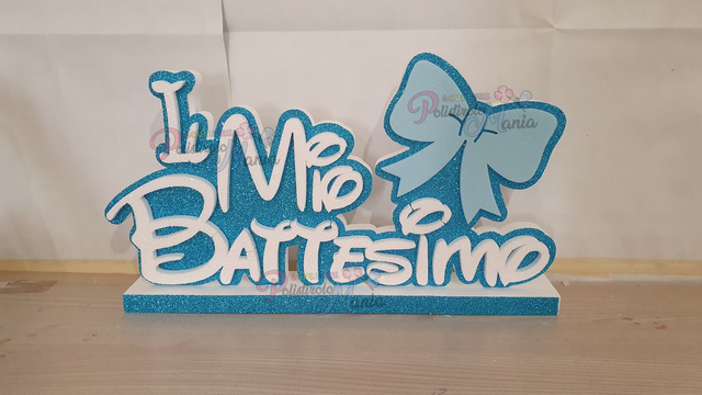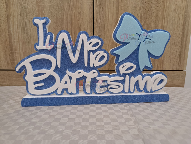 Celebra il battesimo con una scritta personalizzata ad alta densità (30 kg/m³), leggera e resistente, realizzata con cura artigianale.
